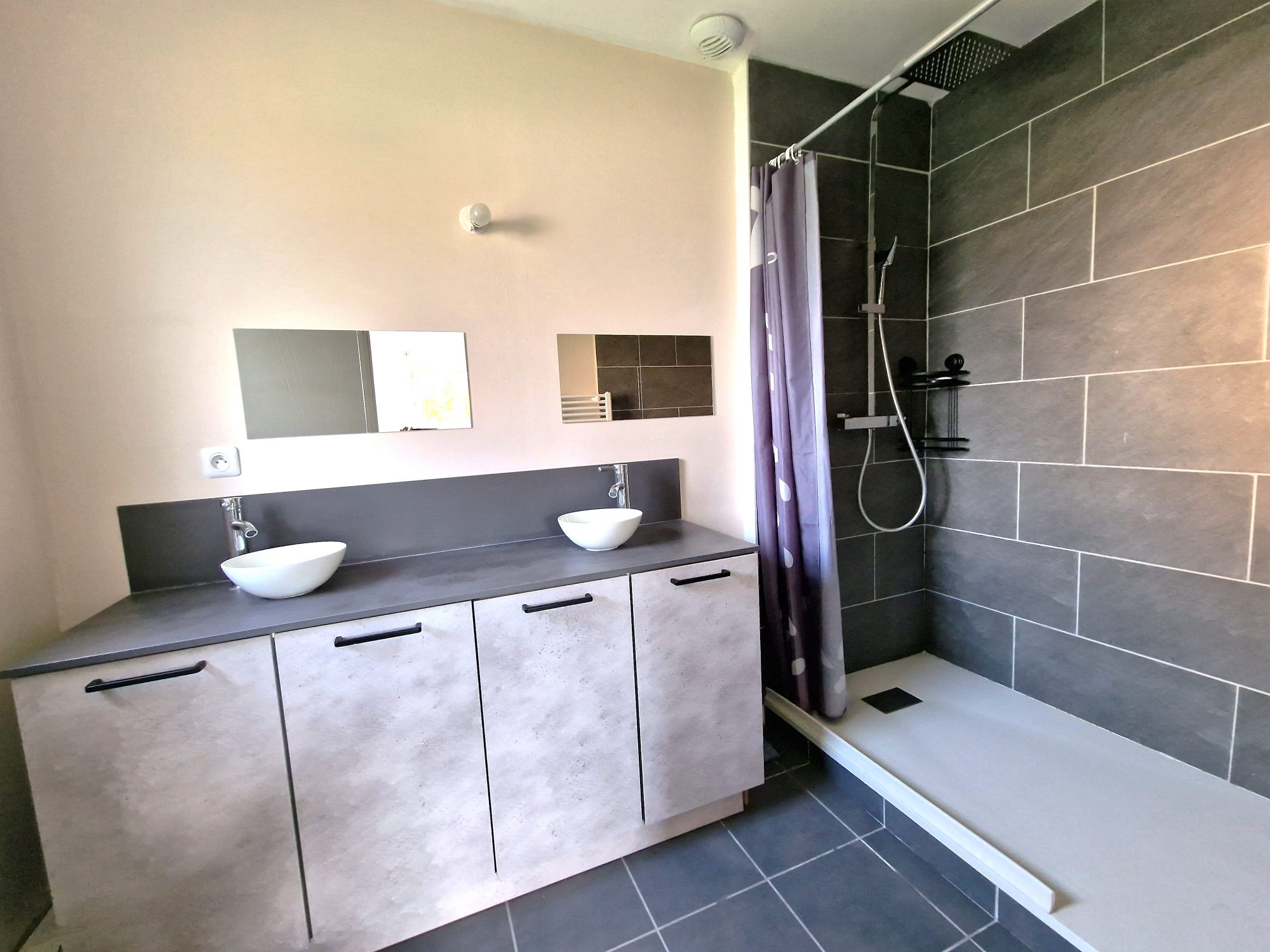 Une entrée avec placard de 4,5 m²Une cuisine semi-ouverte de 8 m²Un séjour salon avec poêle à bois de 40 m²Une chambre avec dressing et salle de douche de 19,4 m²Une buanderie de 5 m²Un WC séparé