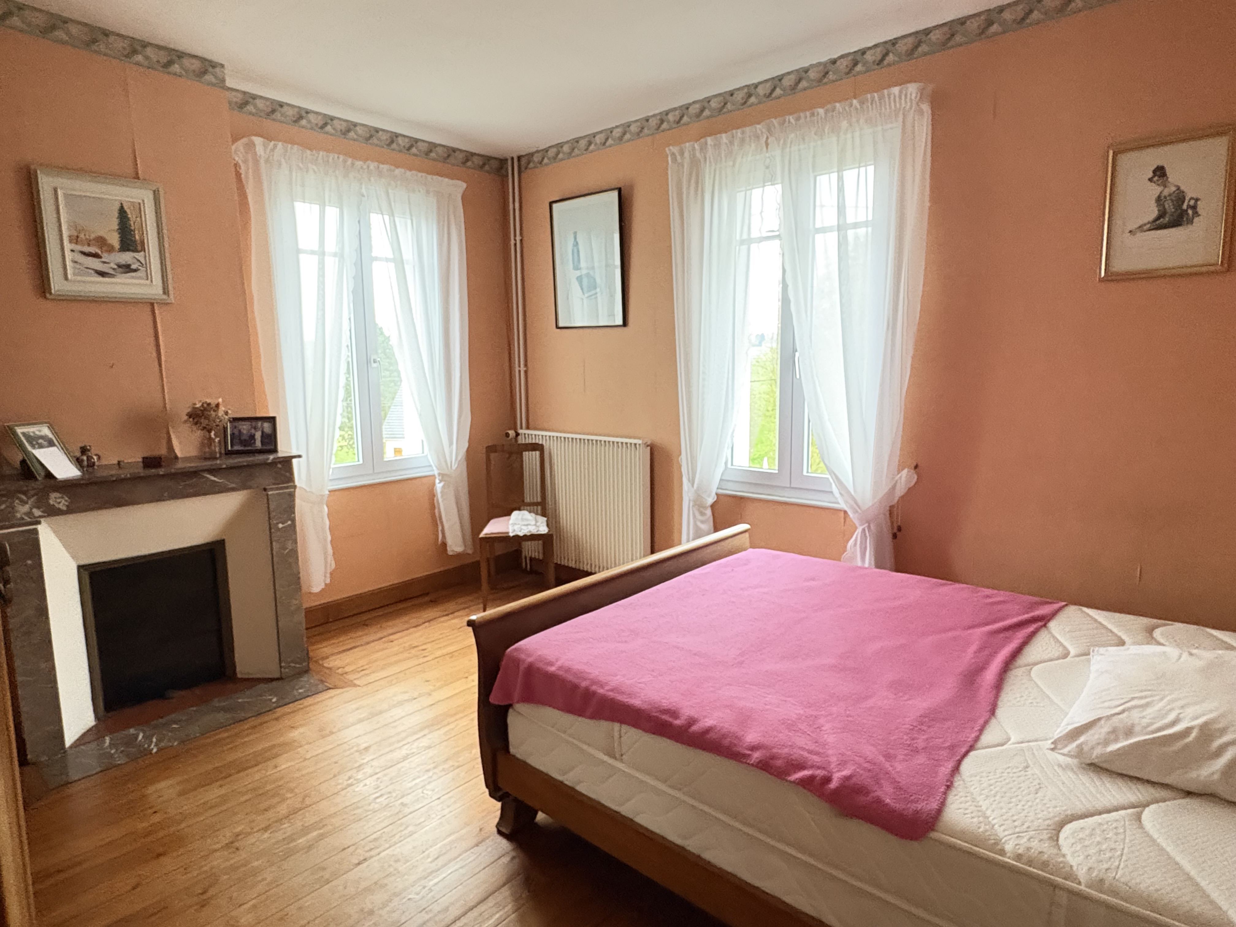 Chauffage individuel au fuel, double vitrage, cheminée.