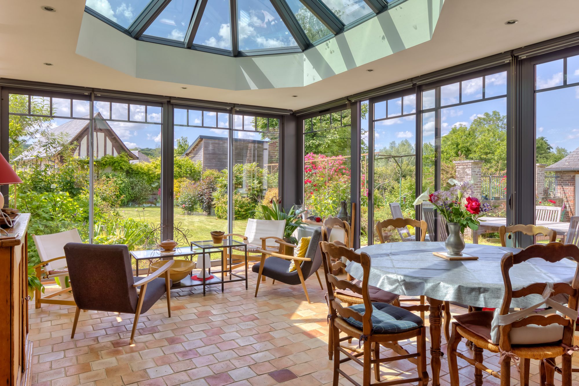 • Une véranda récente avec toit cathédrale