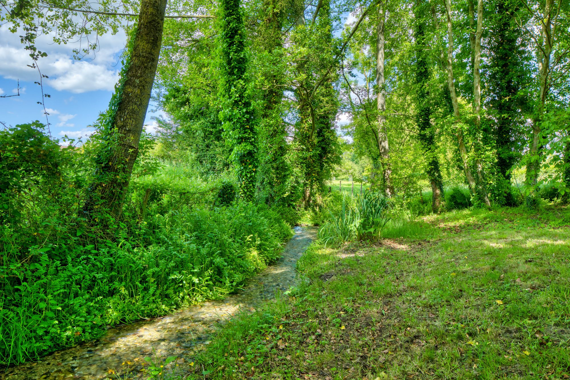 À l’arrière du terrain, une petite rivière serpente paisiblement, renforçant le caractère bucolique des lieux et apportant une touche de charme supplémentaire à l’ensemble.