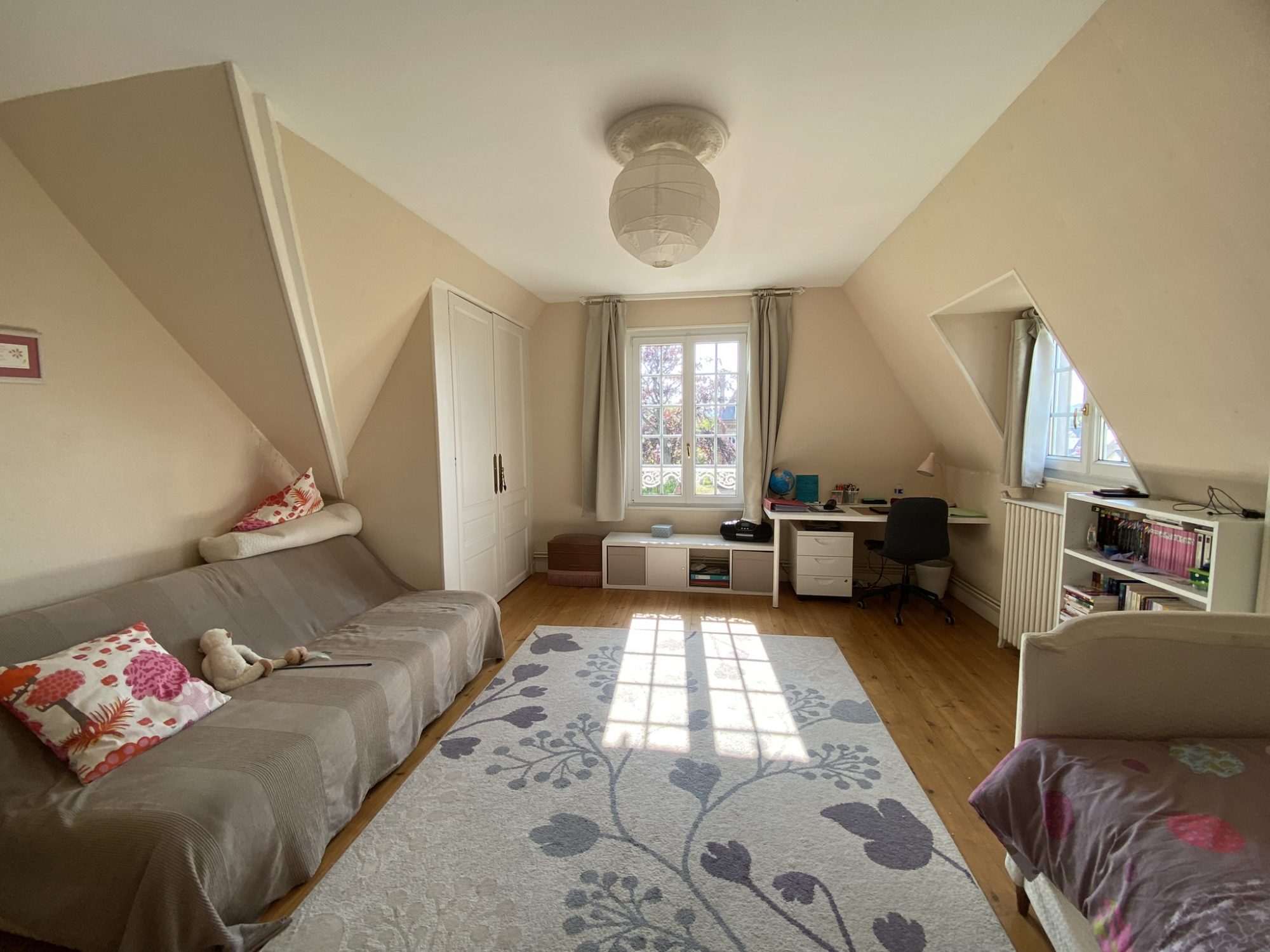 Un palier de 8 m²Une suite parentale de 22m²Une chambre de 14 m²Une chambre de 15,5 m²Une salle de douches séparant les deux chambres,