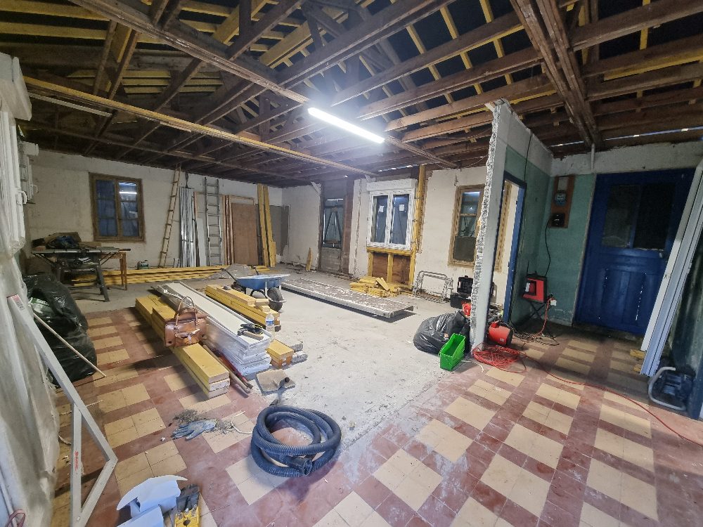 A savoir : Fort potentiel, terrain 1100 m² constructible, toiture ardoise neuve, fenêtres double vitrage PVC avec volets roulants électriques neufs, présence de matériaux achetés neufs (ballon d’eau chaude, goutières, bois, etc…), tout à l’égout.