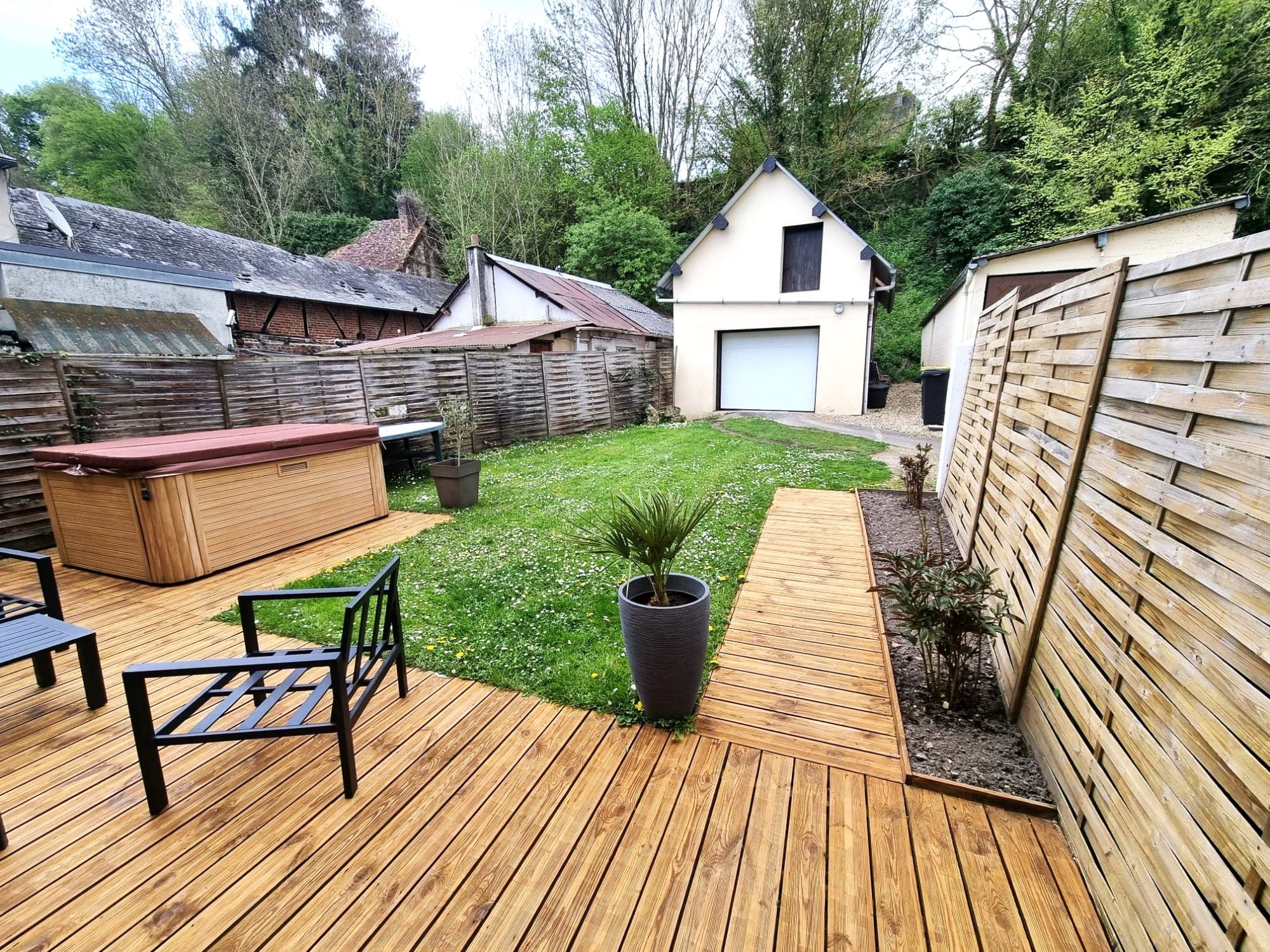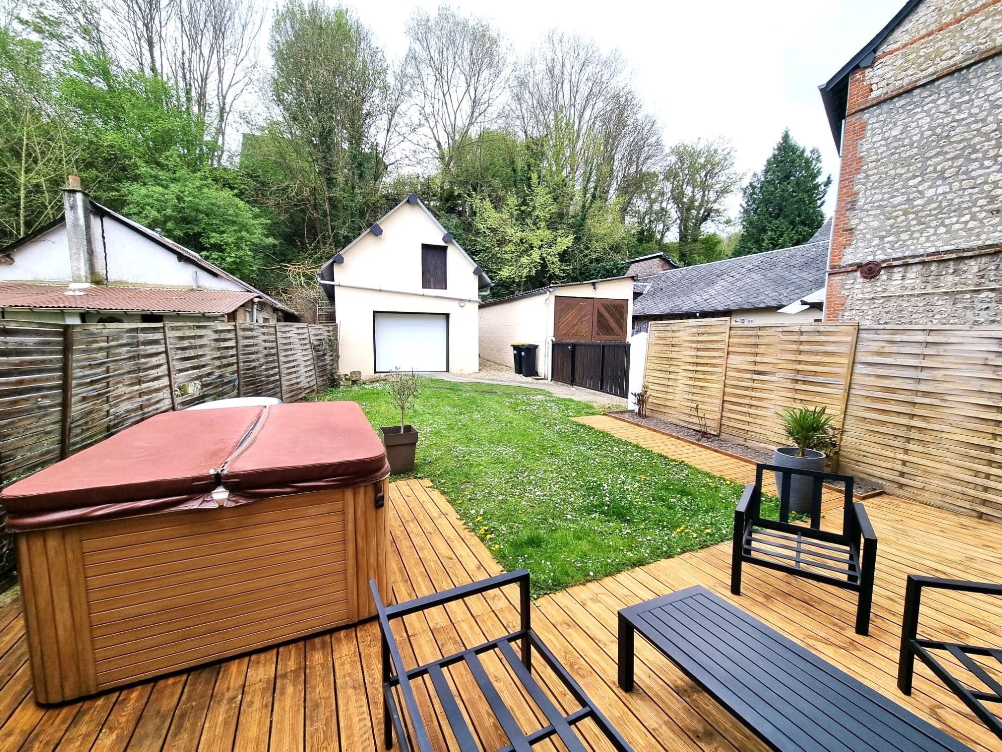 Deux garages dont un de 40m². Chauffage centrale au gaz de ville, double vitrage.