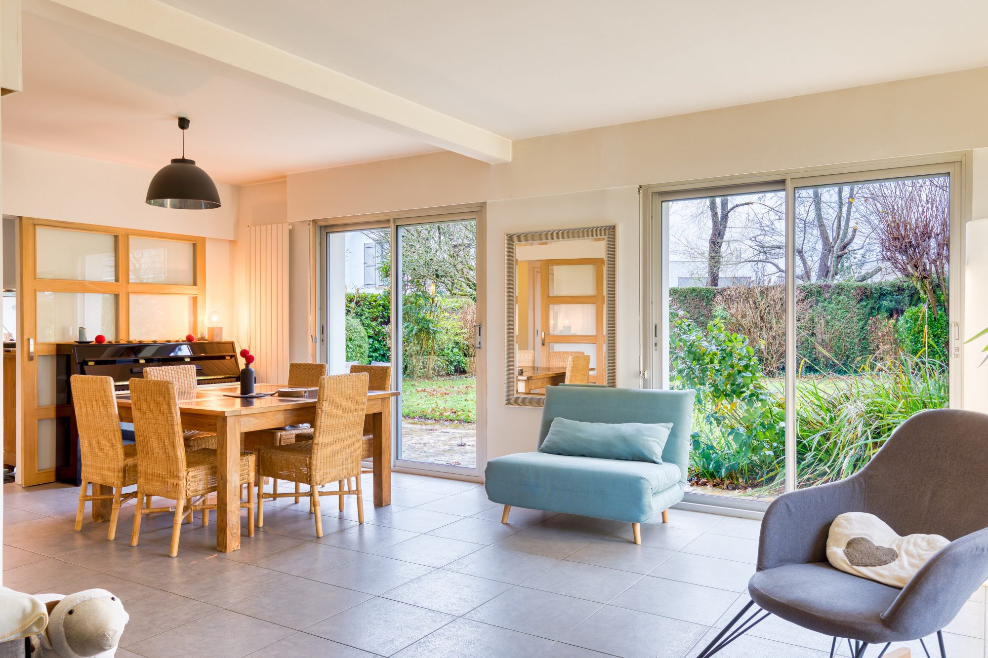 • Une grande cuisine indépendante de 13 m² avec accès à la terrasse du jardin
