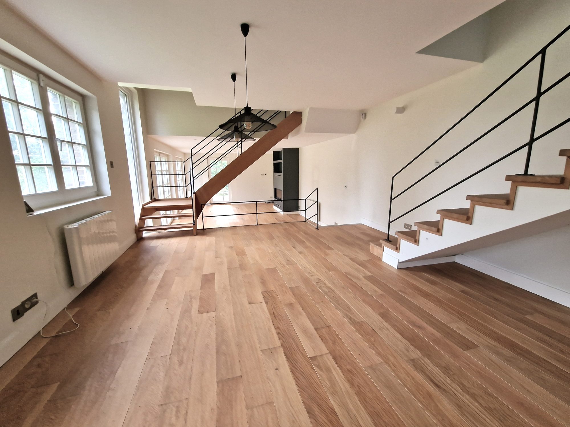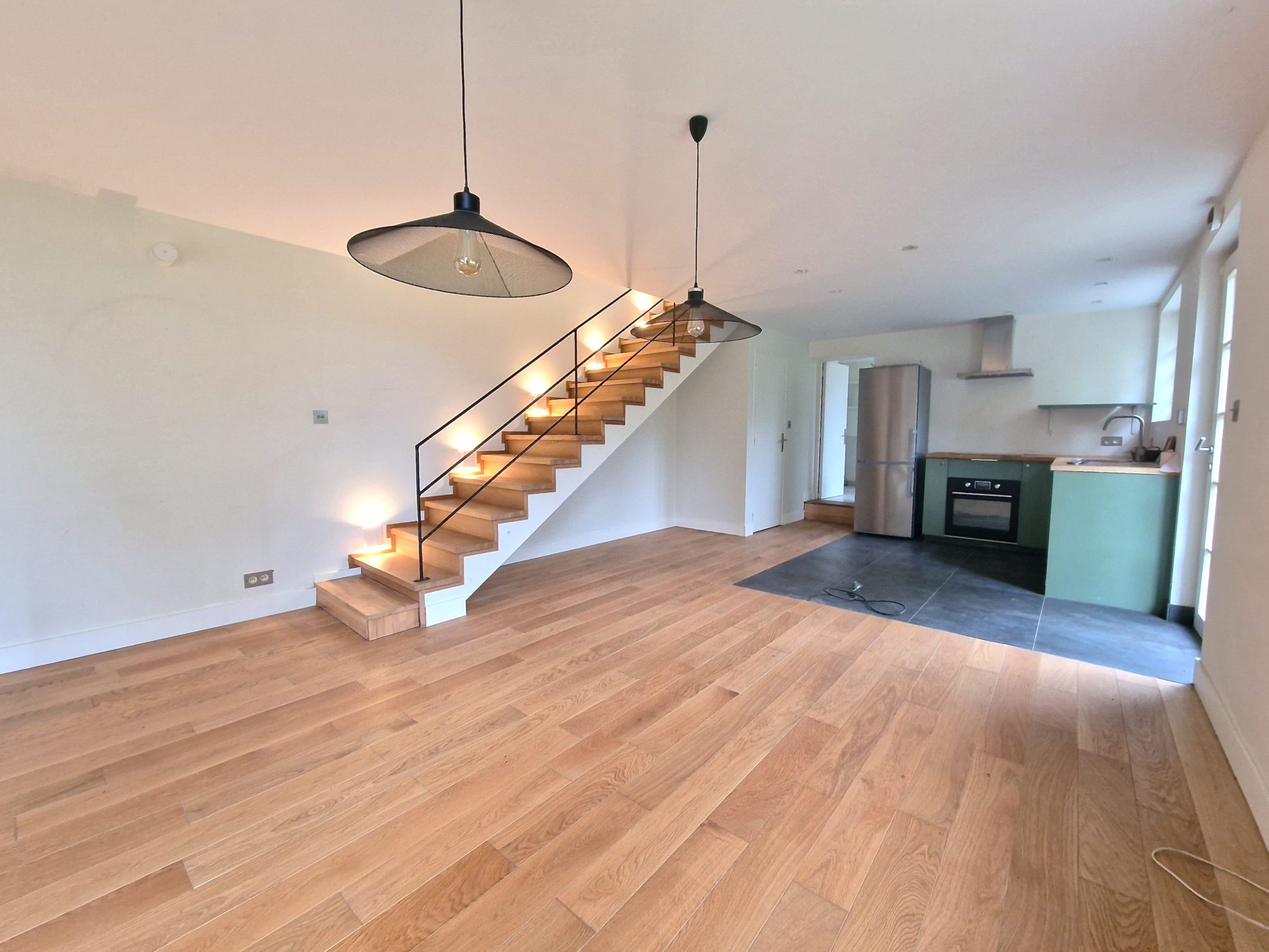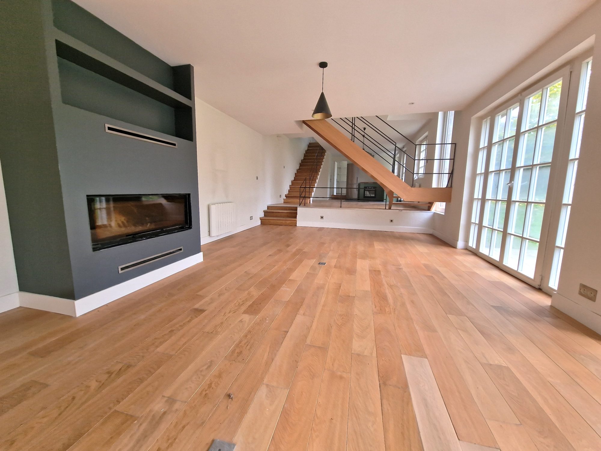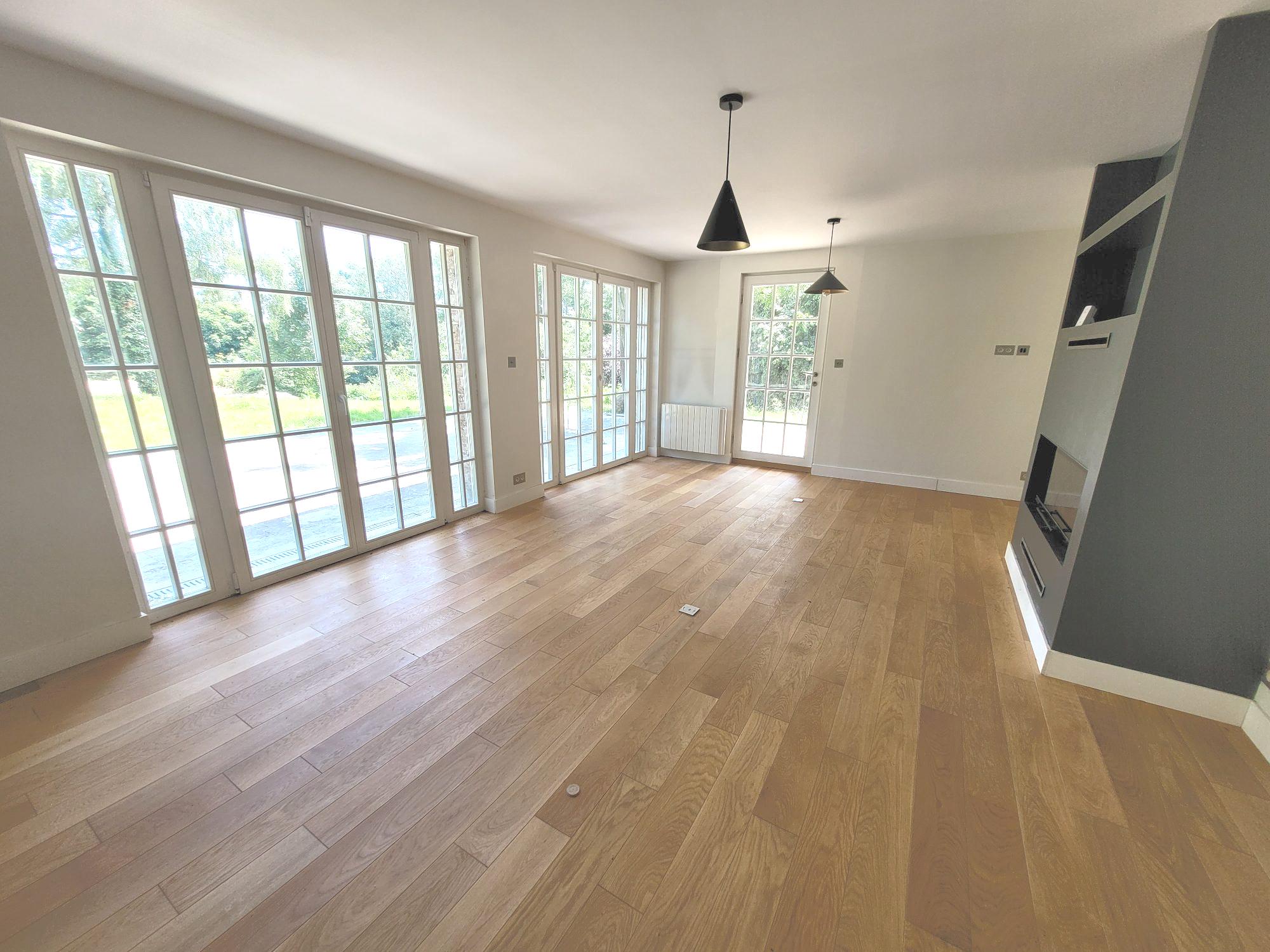 Une grande entrée Un séjour salon de 29 m² Un espace salle à manger ouvert sur la cuisine entièrement équipée de 31m²Une arrière cuisine de 8,50 m²Un WC avec lave main
