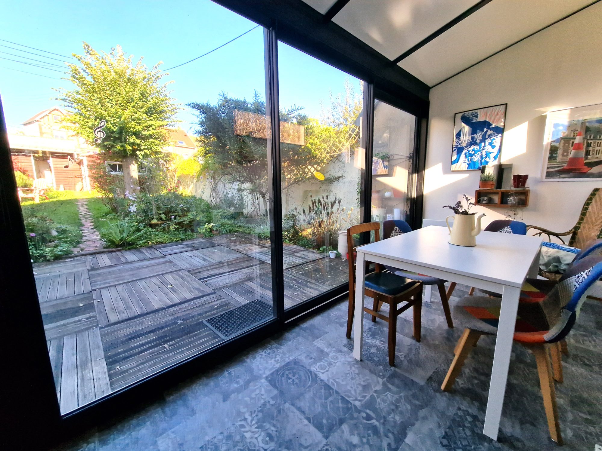 Cette belle maison de 113 m² au sol ( 100 m² Habitable ), exposée SUD, avec son terrain clos de 328 m² et son jardin bucolique, saura vous séduire par son emplacement géographique !