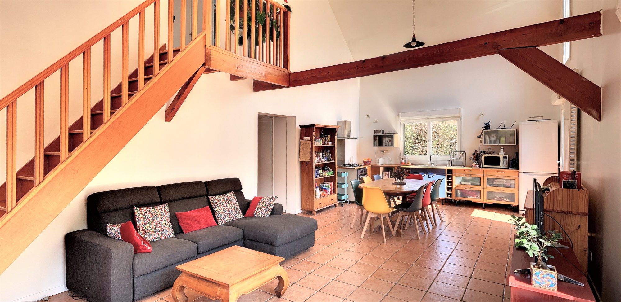 – Un séjour / cuisine ouverte de 42.5 m² donnant sur la terrasse extérieure de 26 m², exposée plein Sud, avec au centre de la pièce une hauteur sous plafond de 5.30 m