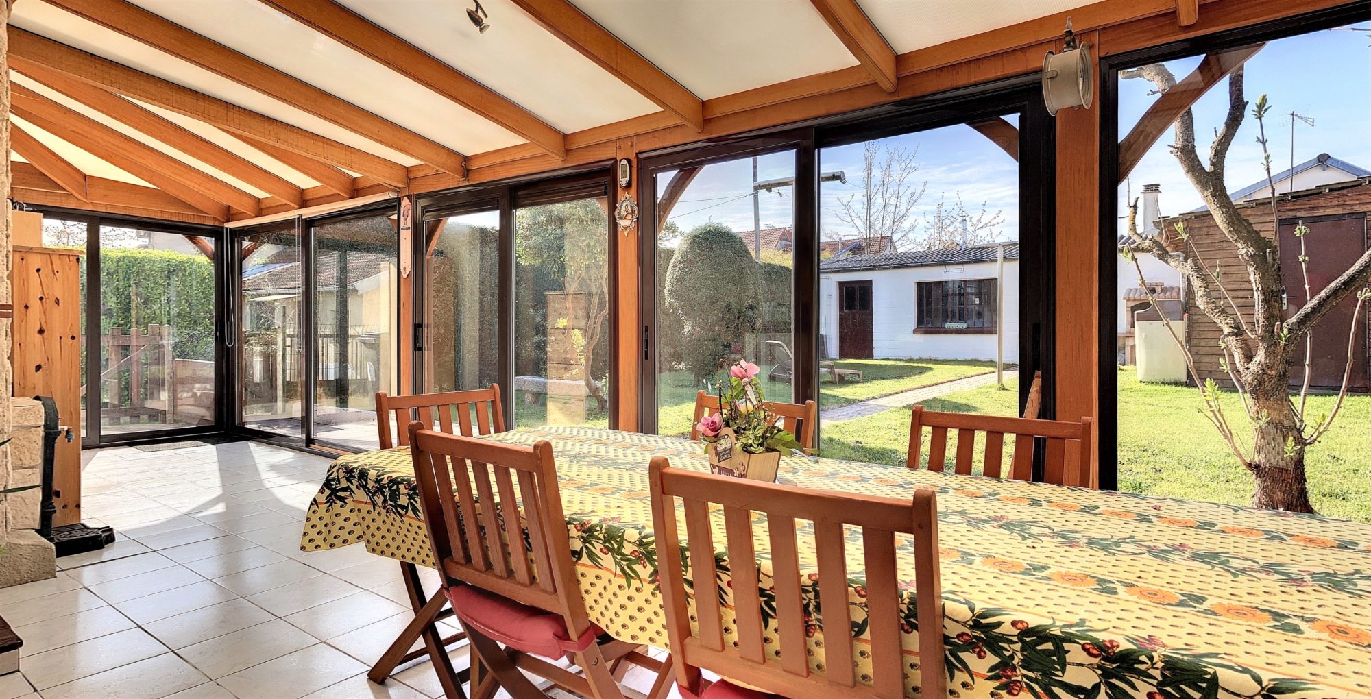 – une véranda de 30 m² exposée plein SUD donnant sur le jardin