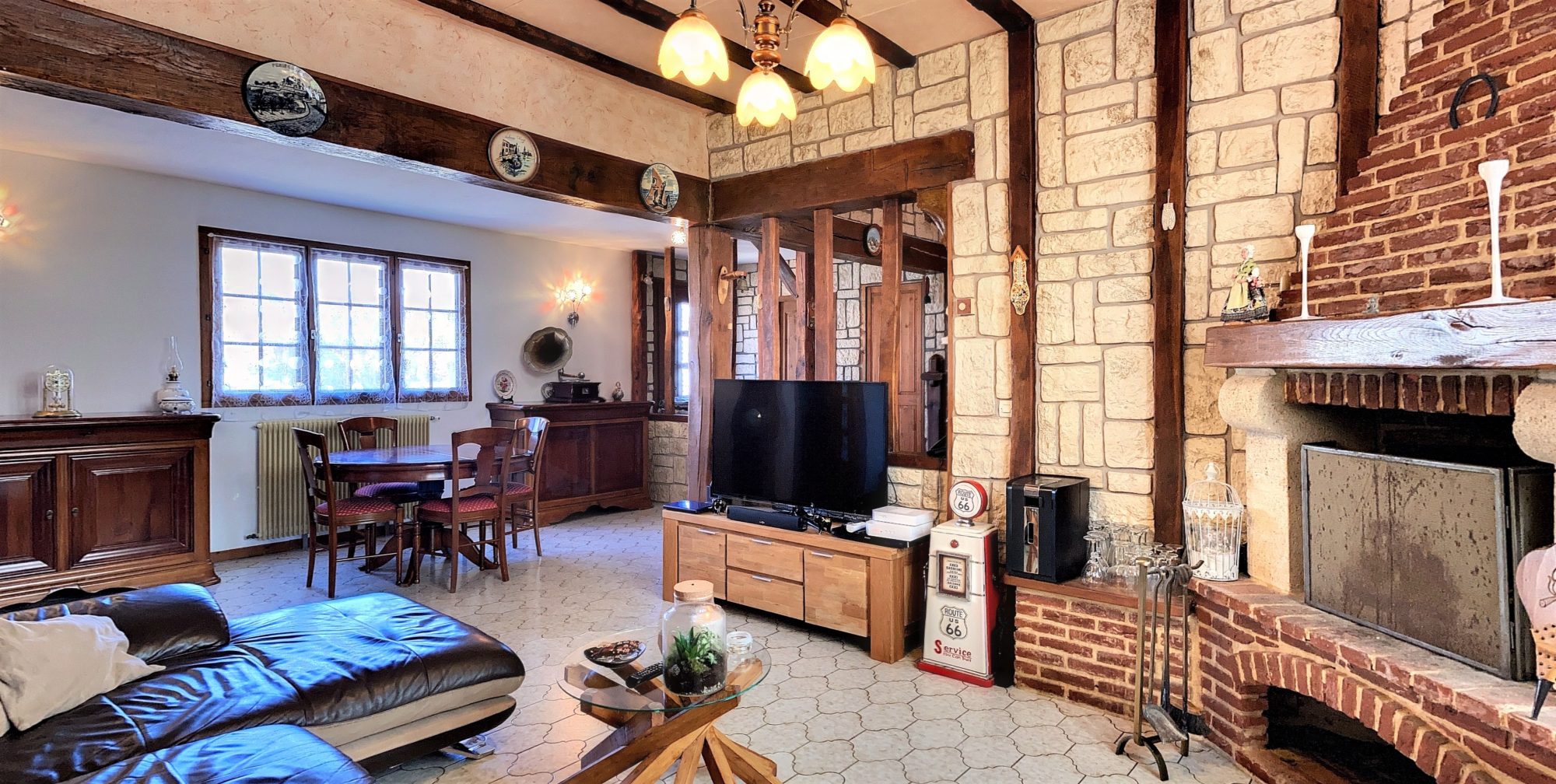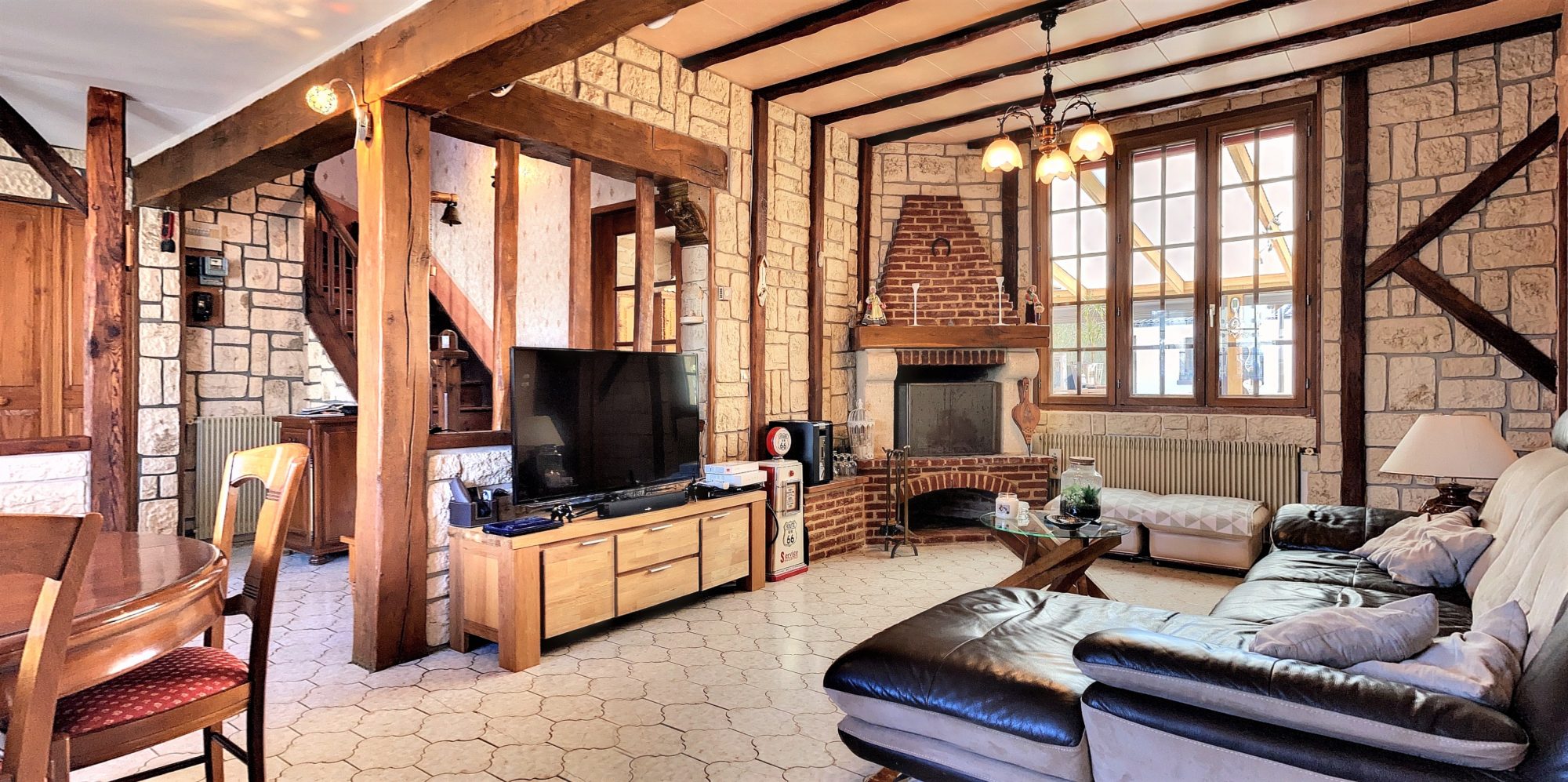– un bel espace de vie avec un salon / séjour de 32 m² avec cheminée