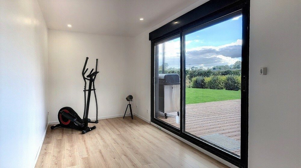 – Une chambre de 14 m² pouvant faire office de dressing, bureau pour télétravail ou salle de sport, donnant sur la terrasse