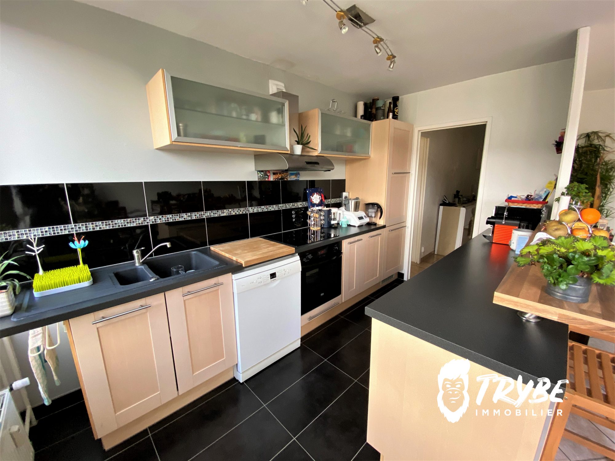 – Une cuisine aménagée/ équipée ouverte sur un séjour-salon très lumineux.