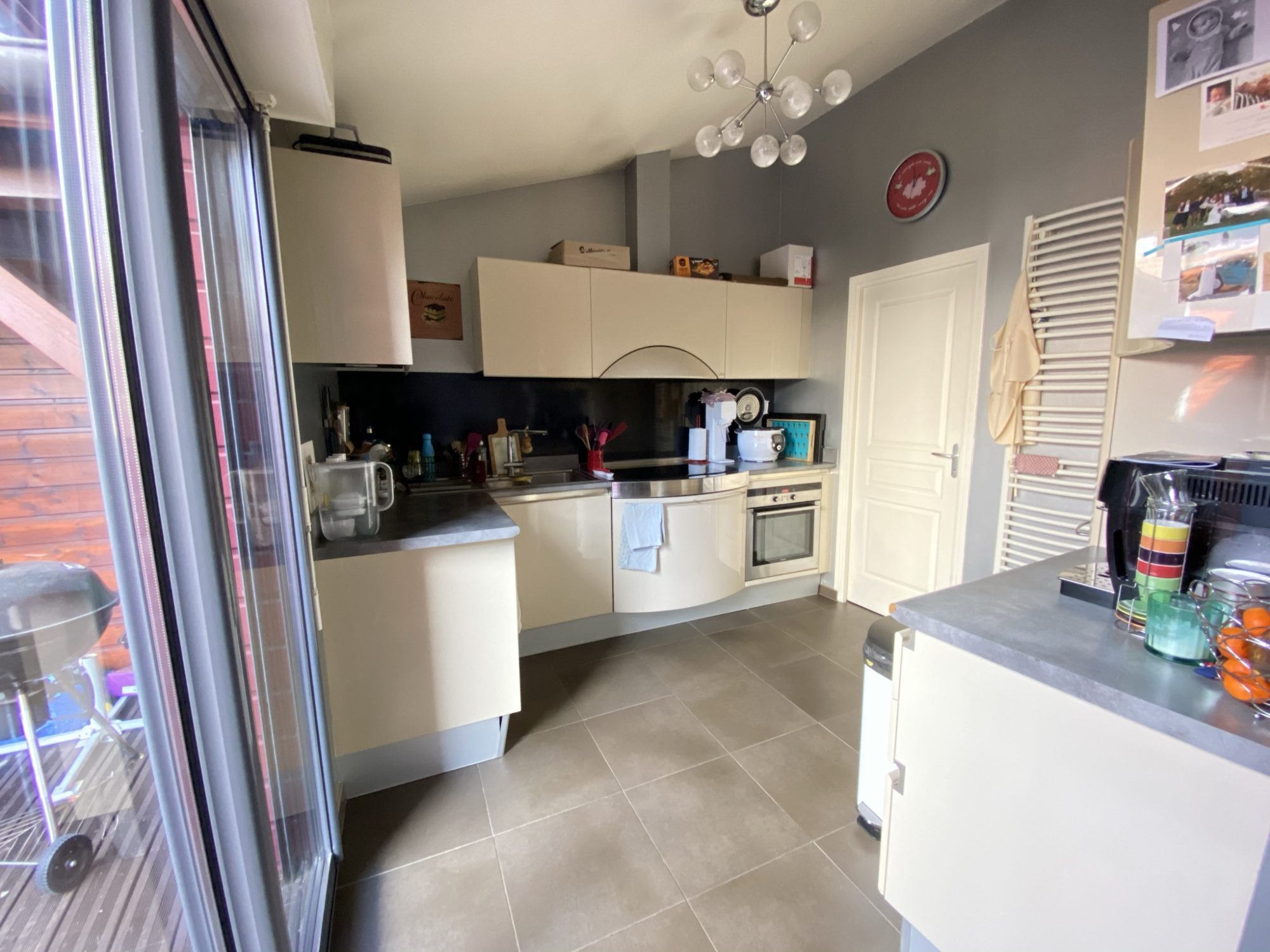 – Une cuisine moderne aménagée et équipée, donnant sur la terrasse