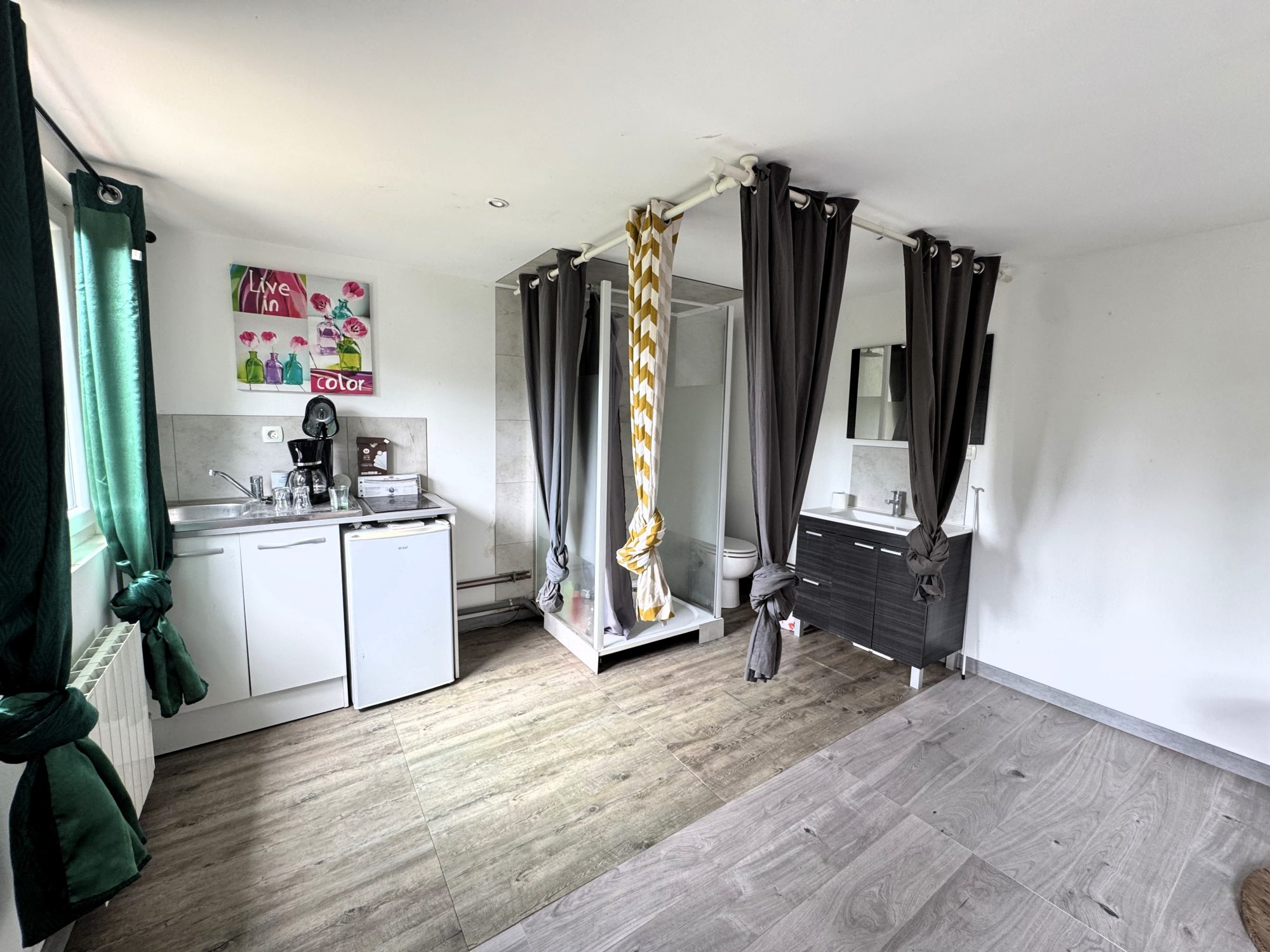 • Un studio : 28 m² ( Avec une cuisine, une douche et un WC )