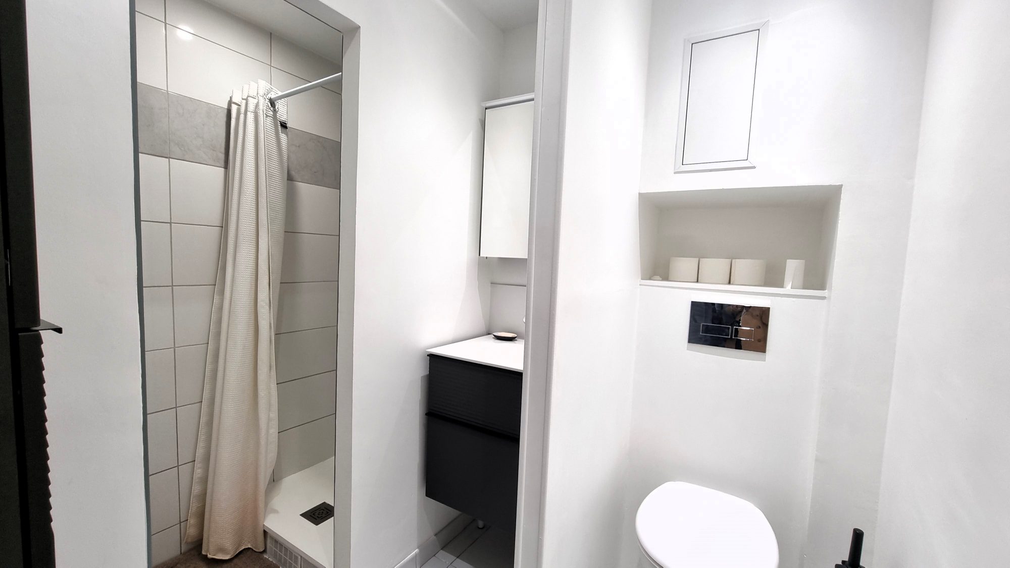 • Une salle de douche avec meuble vasque entièrement refaite à neuf avec WC