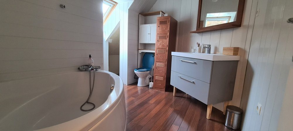 – Une salle de bains avec toilettes