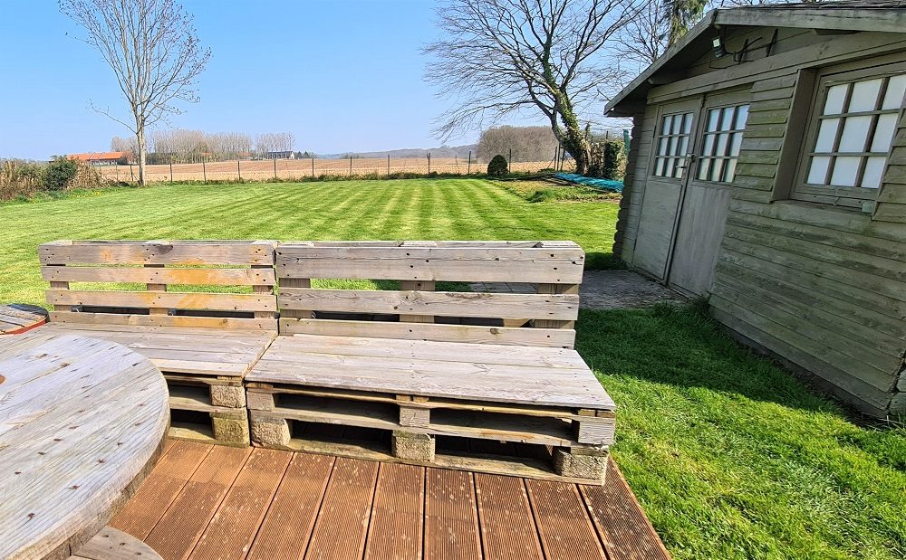 Terrain plat. abri de jardin, coin terrasse avec vue panoramique sur la campagne, possibilité de rentrer un camping car ou une caravane, deux garages, portail et porte motorisés, possibilité de stationner plusieurs véhicules en extérieur dans la propriété. Vidéophone, pompe à chaleur, tout à l’égoût.