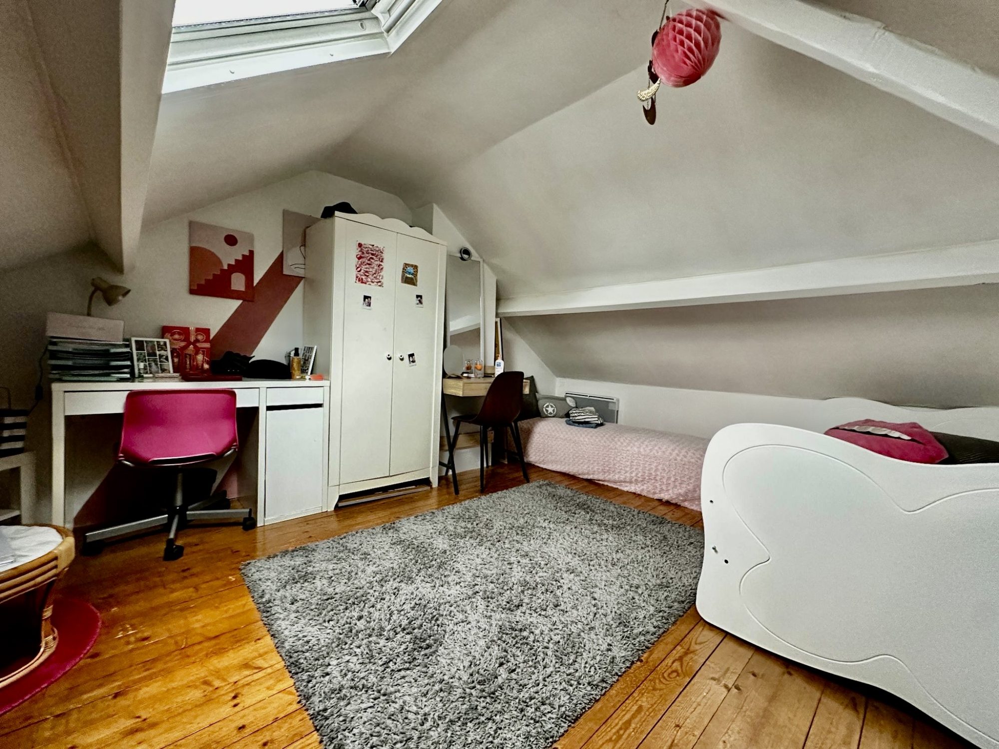 Une entrée avec placardsUne pièce de vie baignée de lumière avec sa cheminéeUne cuisine indépendante aménagée et équipéeDeux chambresUne salle de bainsUn WC indépendantA l’étage :Une grande pièce palière lumineuseDeux chambres parquetées avec Vélux récents et stores occultantsUne petite pièce supplémentaire