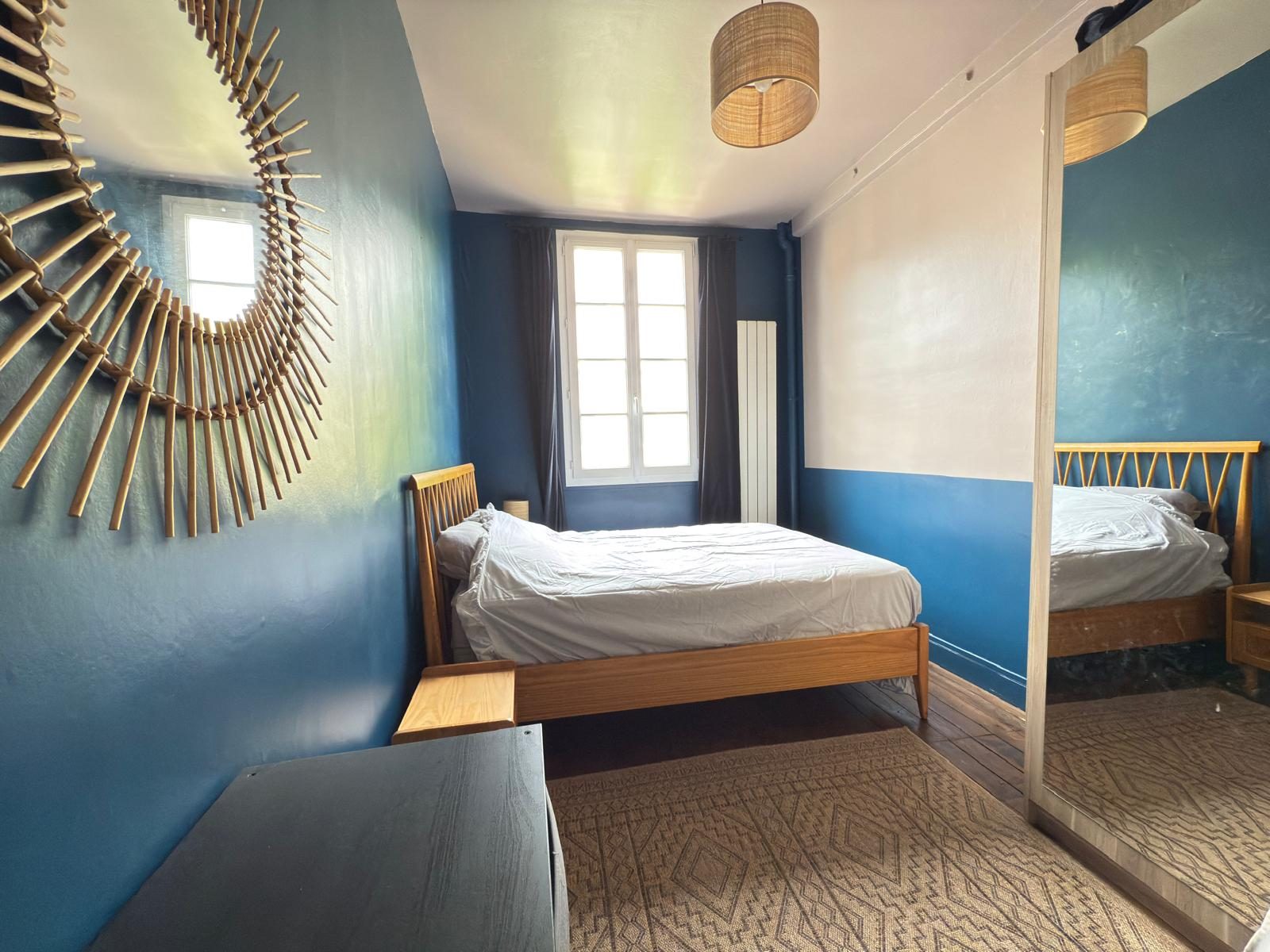 Une entréeUn séjour/salon d’environ 23m² avec parquet ancien d’origine et cheminée d’époque, baigné de lumière, exposé plein SUDUne cuisine aménagée et équipée d’environ 12m²Une chambreUne deuxième chambre avec rangements et cheminée décorativeUne grande salle de douchesUn WC indépendant