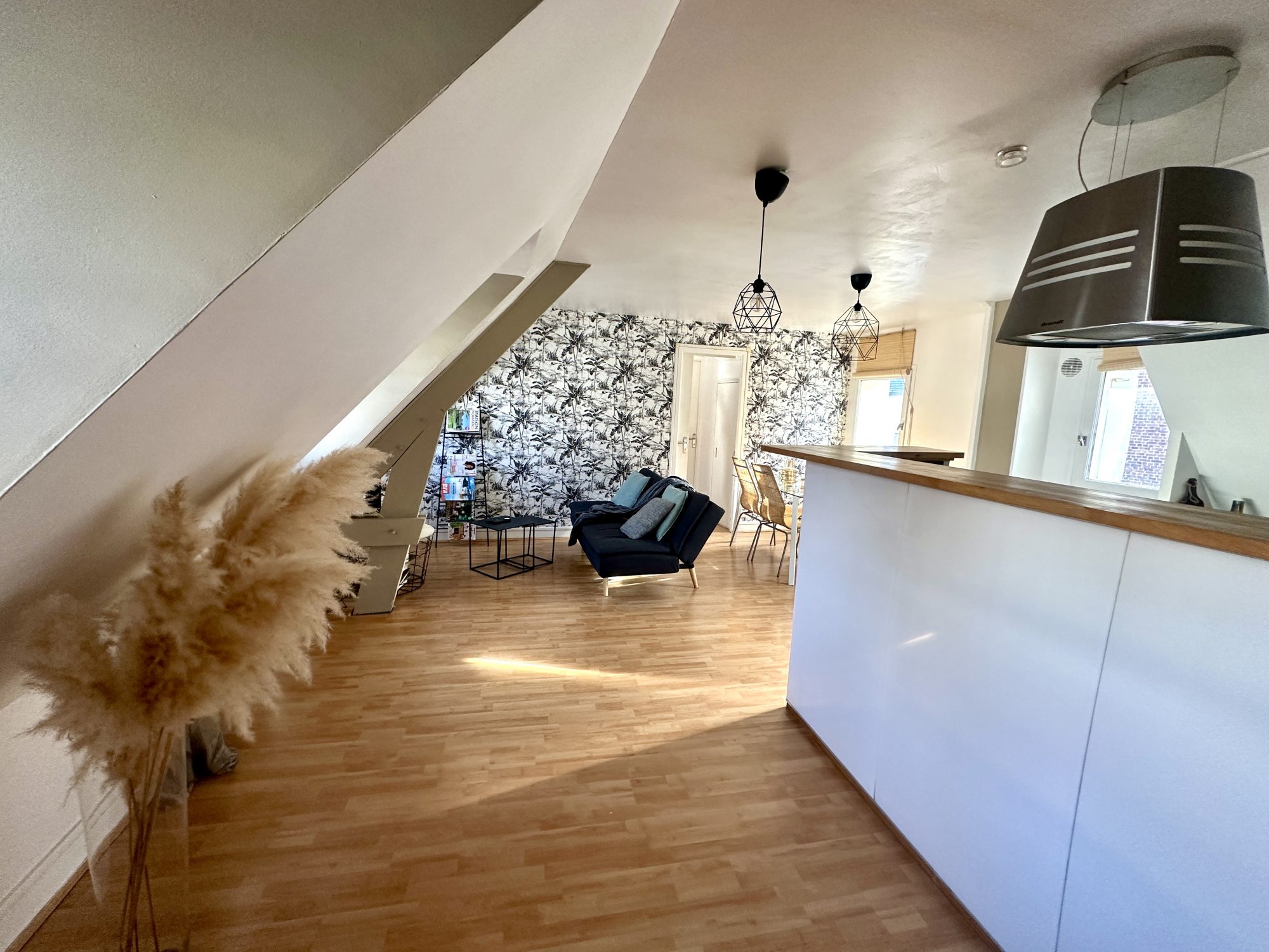 • Un séjour avec cuisine ouverte aménagée et équipée