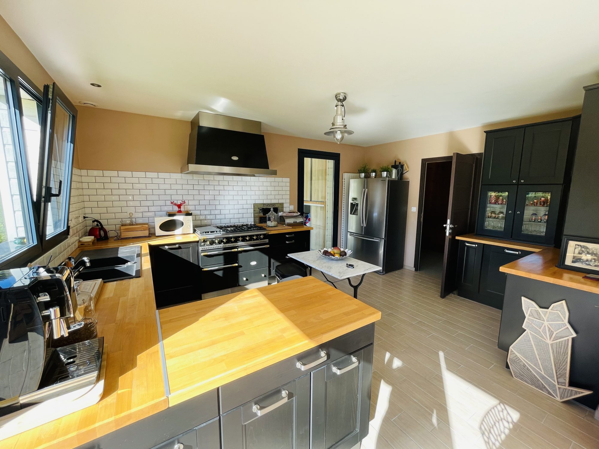 – Une vaste cuisine aménagée et équipée de 28m² avec coin repas