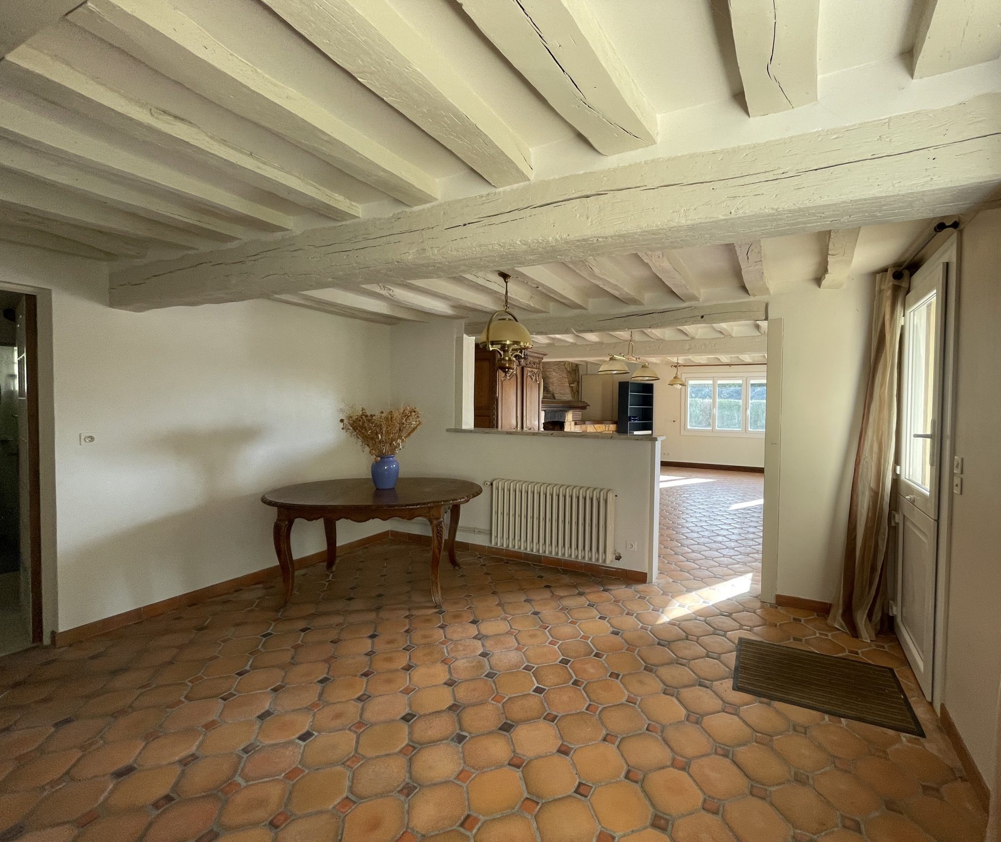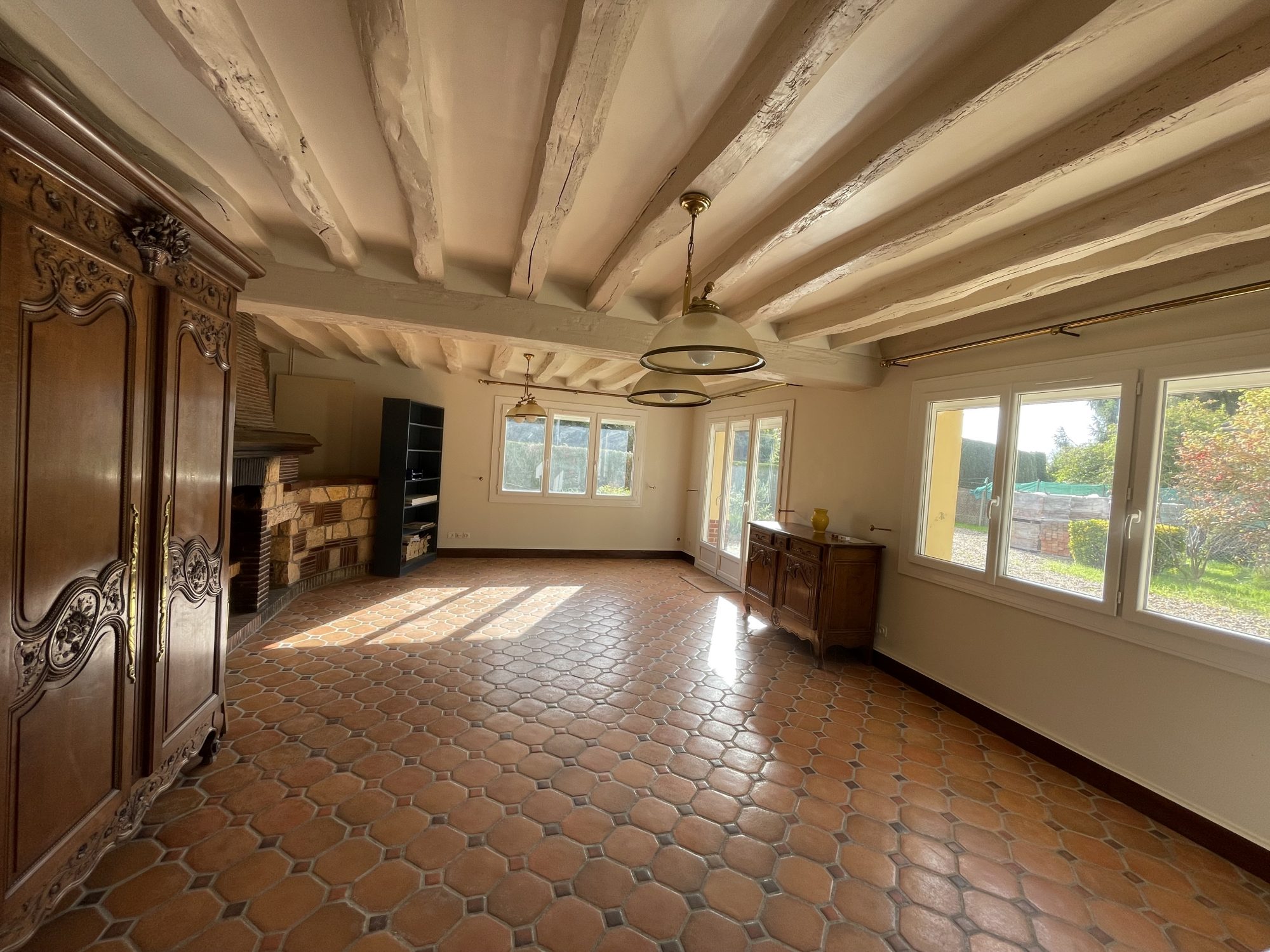 – Un salon-séjour de 55 m² avec cheminée foyer ouvert,