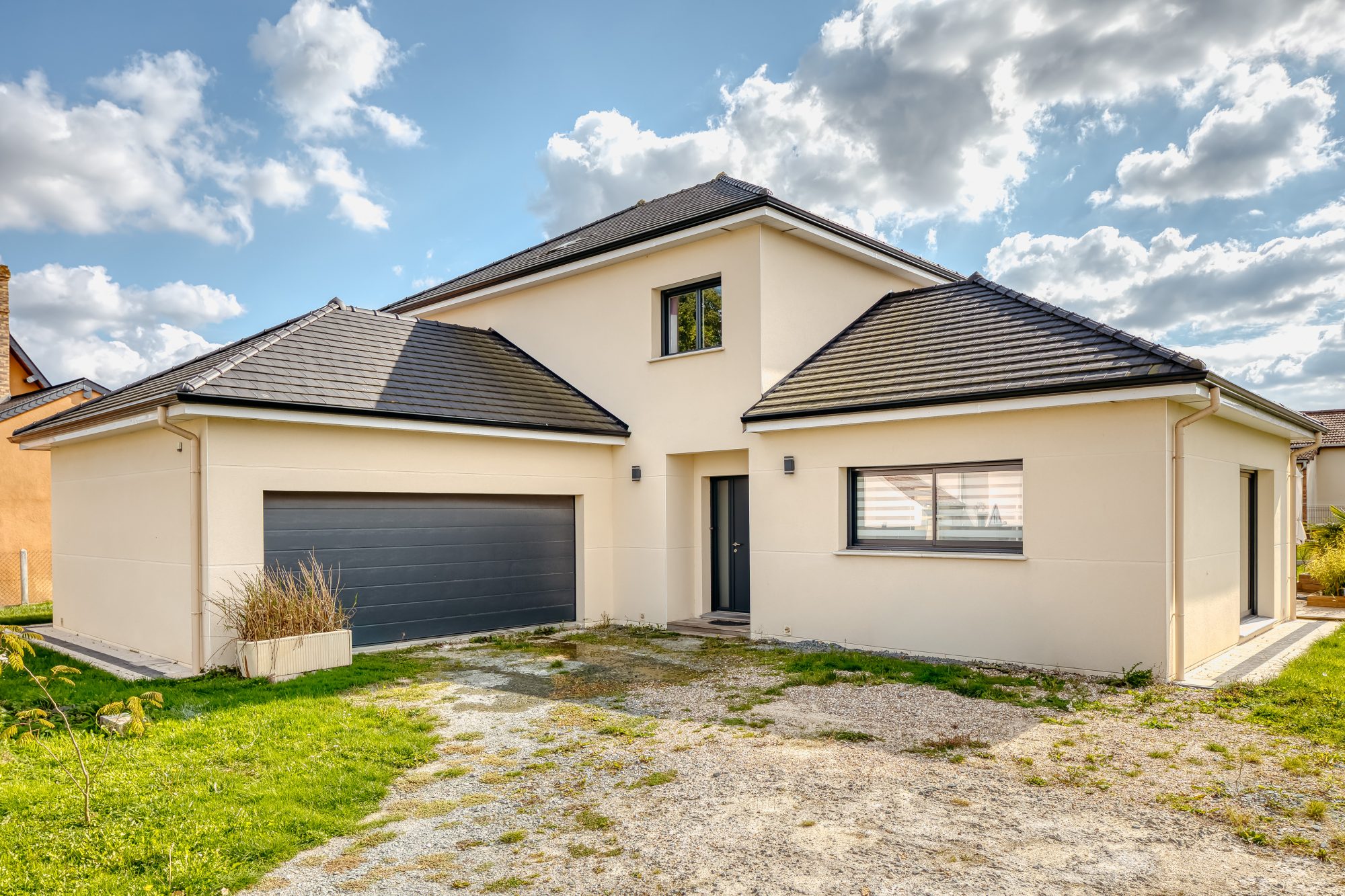 Chauffage via chaudière à condensation, plancher chauffant et radiateurs à l’étage | Ballon thermodynamique pour la production eau chaude | Fenêtres double vitrage alu K-LINE et volets roulants électriques BUBENDORFF | DPE : C | GES : C | Assainissement collectif | Parcelle de 736 m² | Double garage | Maison raccordable à la fibre