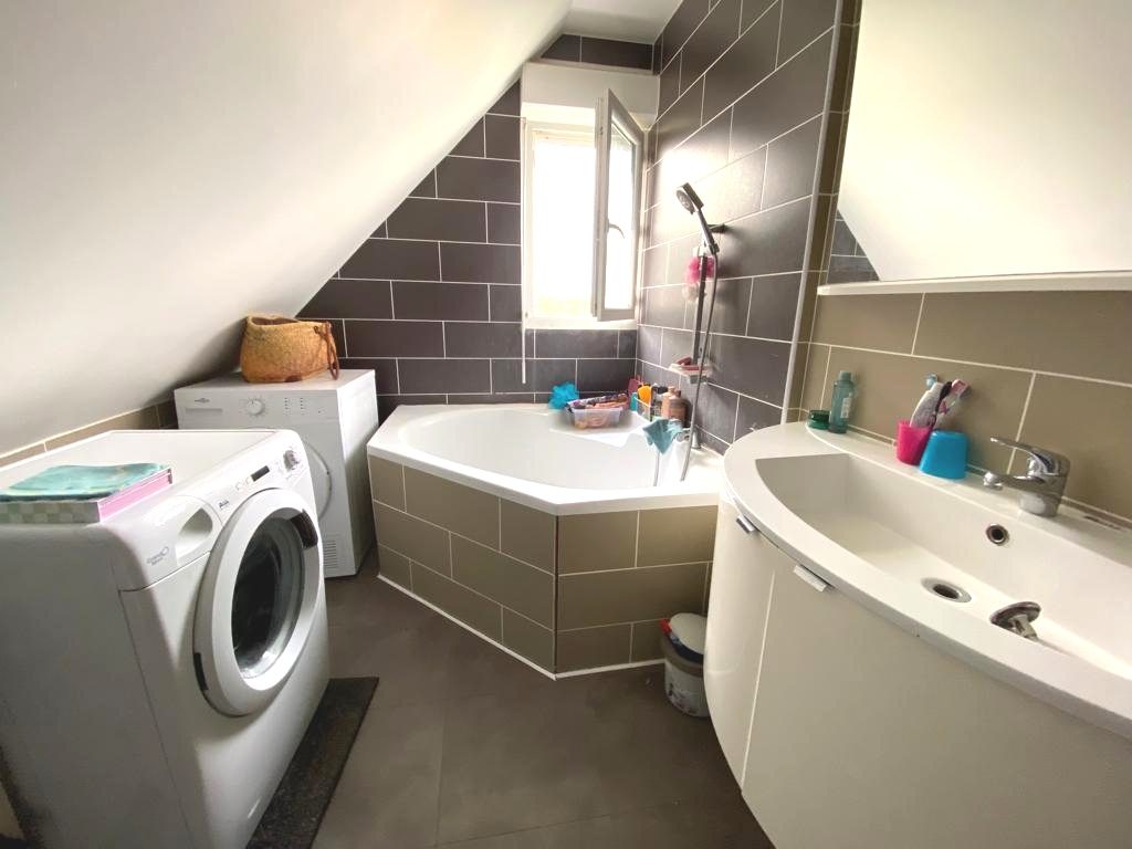 – Une grande salle de bains de 13 m² au sol avec baignoire d’angle