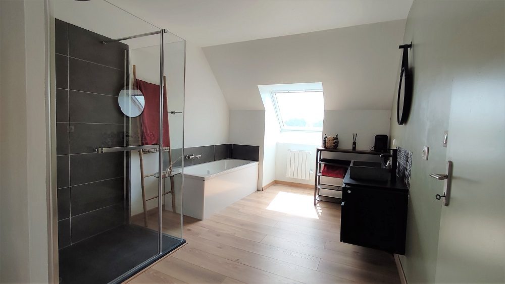 – Une magnifique salle d’eau avec une baignoire et une douche ainsi qu’un WC de 13 m²