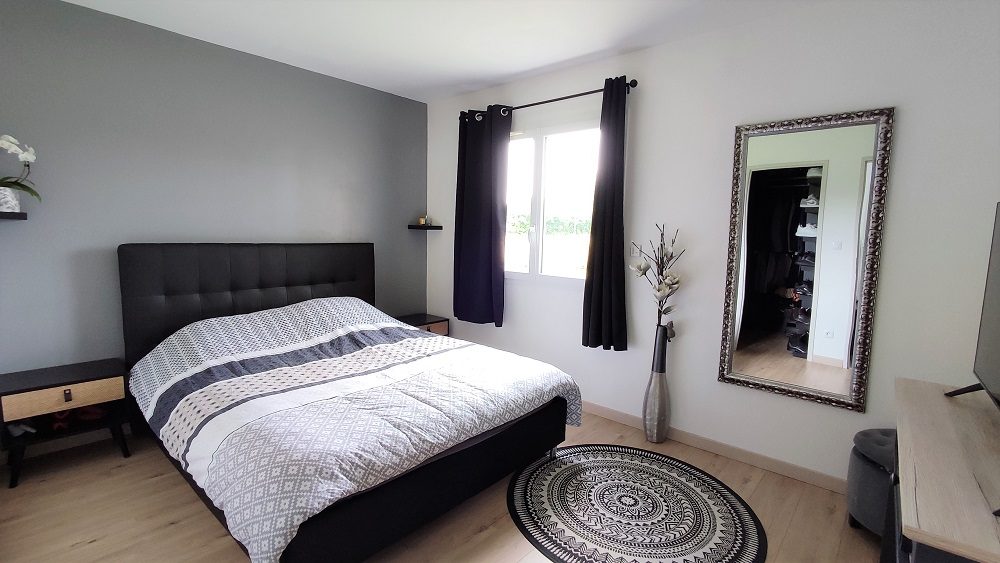 A savoir : Aucun travaux à prévoir, suite parentale, magnifique poêle à granulés et radiateurs électriques, cuisine ouverte aménagée et équipée, tout à l’égout, logement peu énergivore, volets roulants éléctriques centralisés, visiophone, portail automatisé, garage, arrosage automatique et robot tondeuse