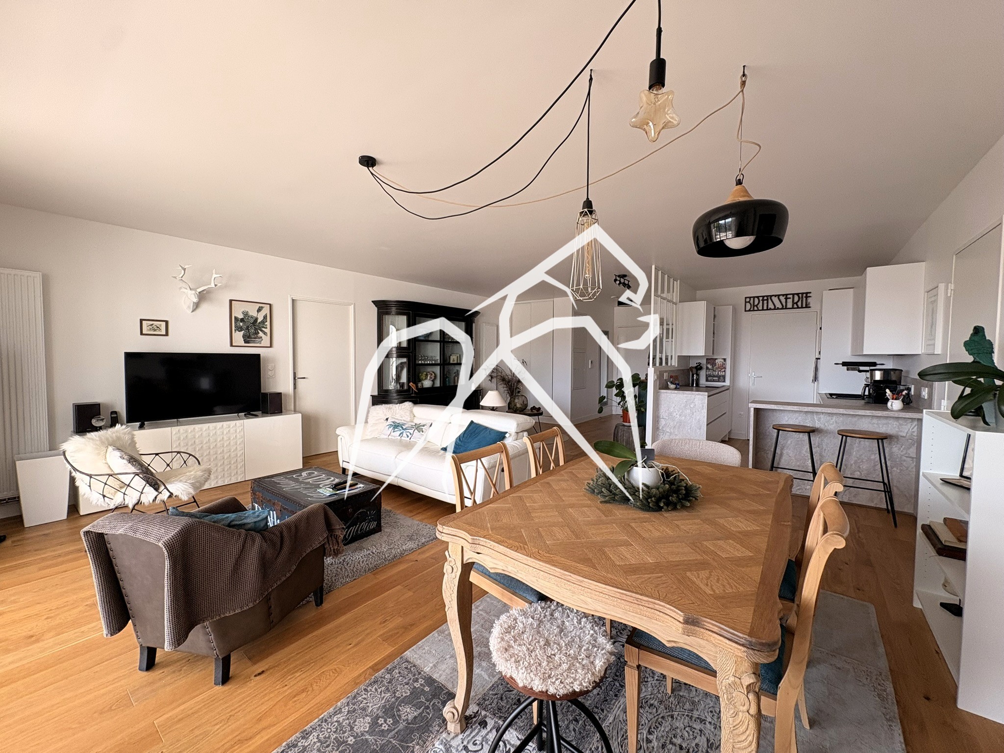 D’une surface généreuse de 98 m², l’appartement séduit par sa luminosité, sa vue et ses prestations haut de gamme. L’ensemble de l’espace de vie est conçu pour maximiser le confort : le séjour chaleureux s’ouvre directement sur la grande terrasse, véritable pièce en plus à ciel ouvert, parfaite pour vos moments de détente ou pour accueillir vos proches. La cuisine ouverte, entièrement équipée avec électroménager de qualité, propose de nombreux rangements et un design moderne, agréable au quotidien.