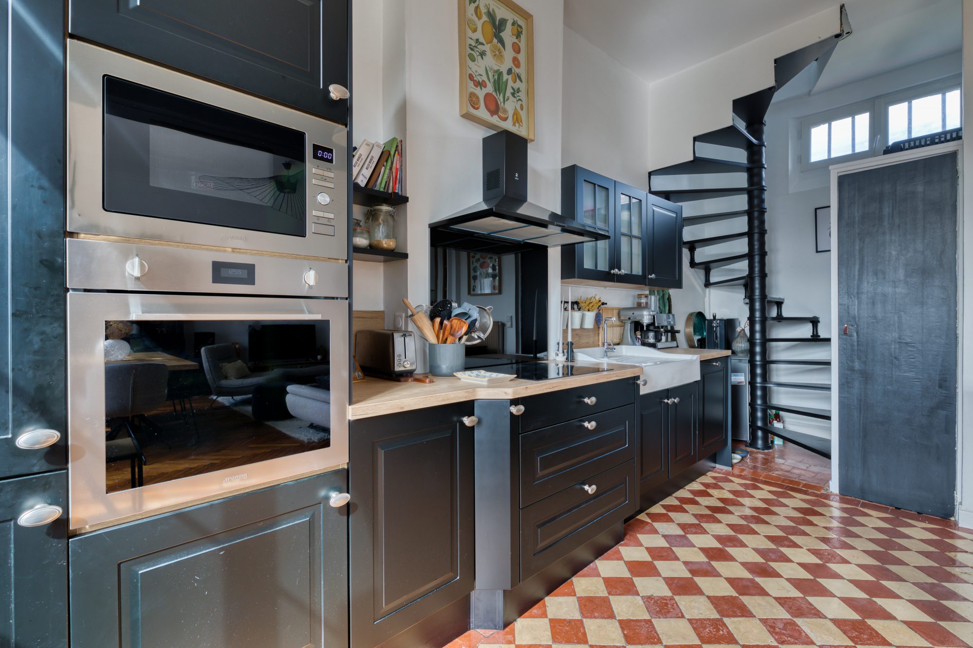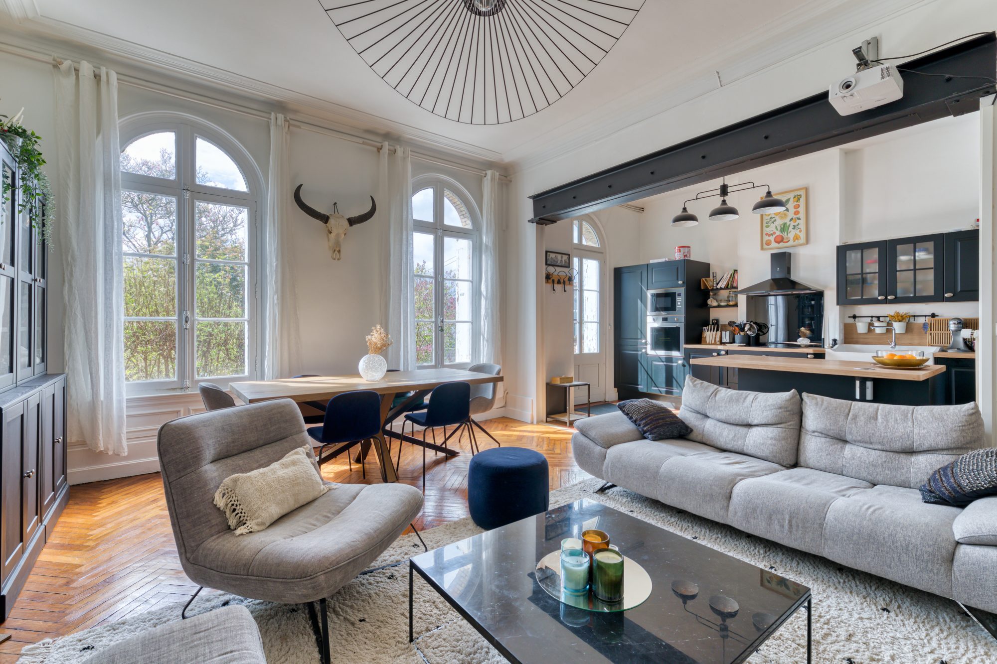 Charme de l’ancien et du moderne | Tomettes | Parquet pointe de Hongrie | Moulures | Hauteur sous plafond 3,35 | Cuisine entièrement aménagée et équipée ( Electroménager SMEG | Au calme et à proximité des commerces et des écoles | Stationnement | Cave |